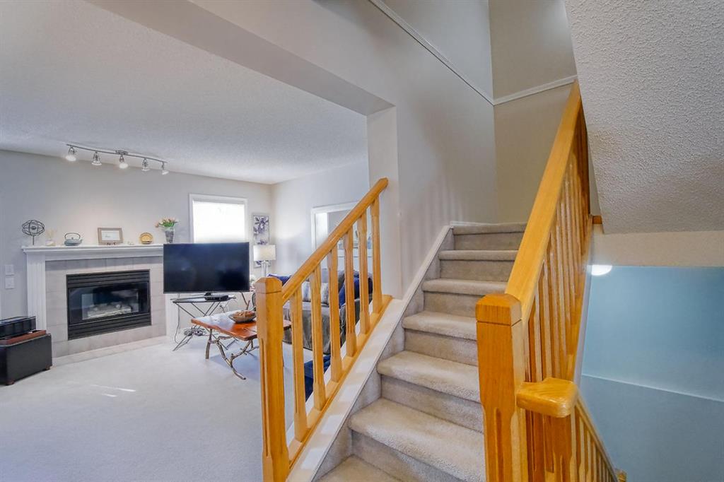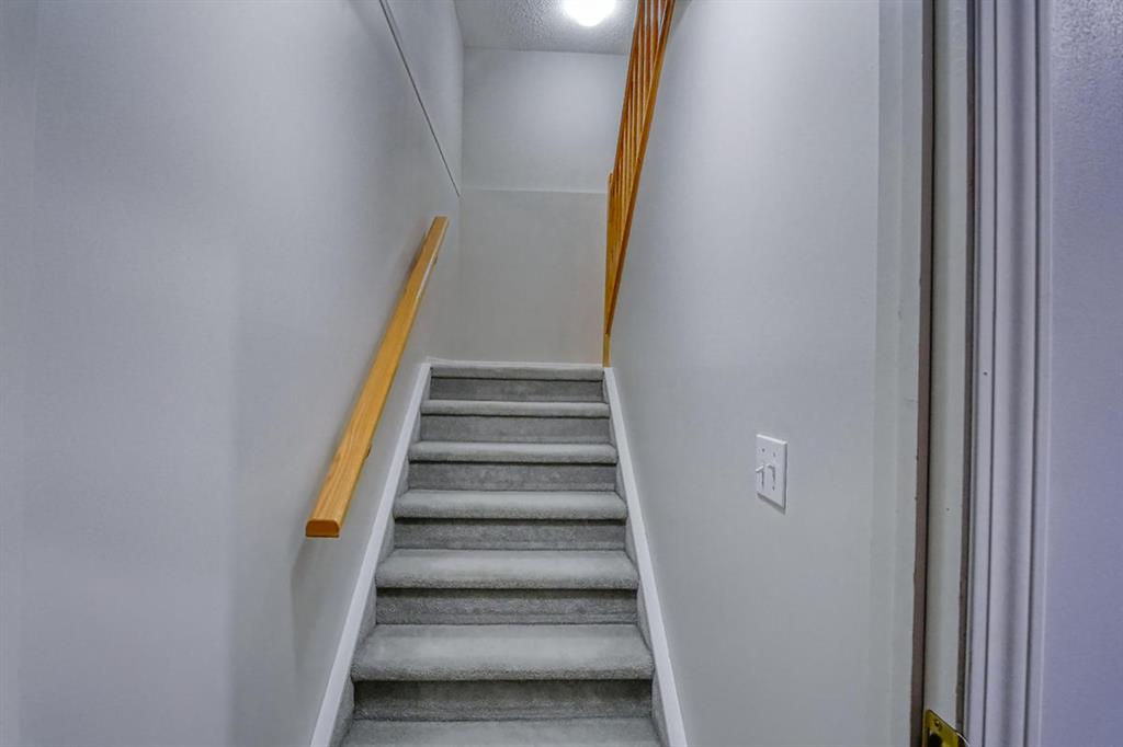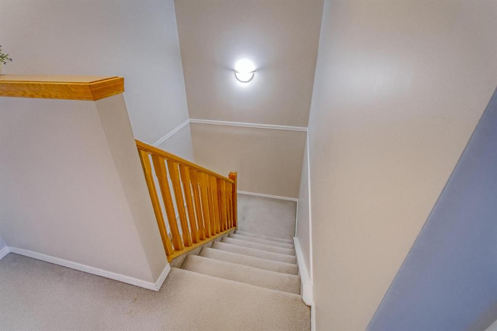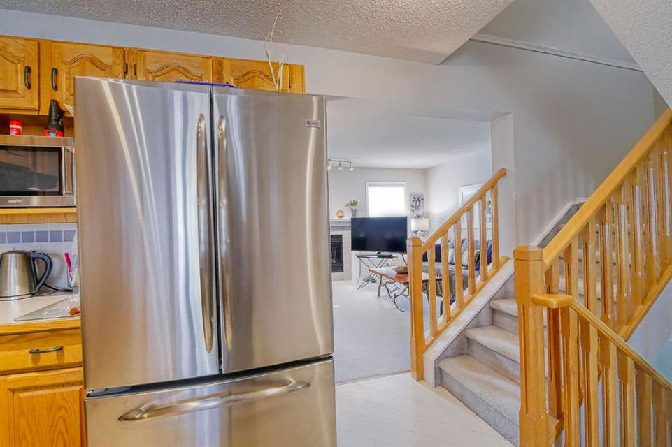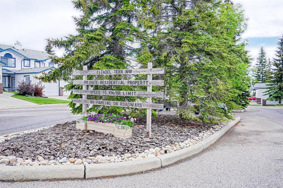 Welcome home to this well cared for townhouse which offers a large living room with gas burning fireplace, good size kitchen and dining area on the main floor. Upper floor offers a large master bedroom with 4-piece en-suite & a walk-in closet, 2 more bedrooms and a full bathroom. A cozy and large family room in the basement, laundry room & storage area. All in a well managed Complex! An excellent opportunity for a first time home buyer. Quiet location yet convenient, steps away from Citadel Park Elementary school , close to bus stop, shopping,,…………..!