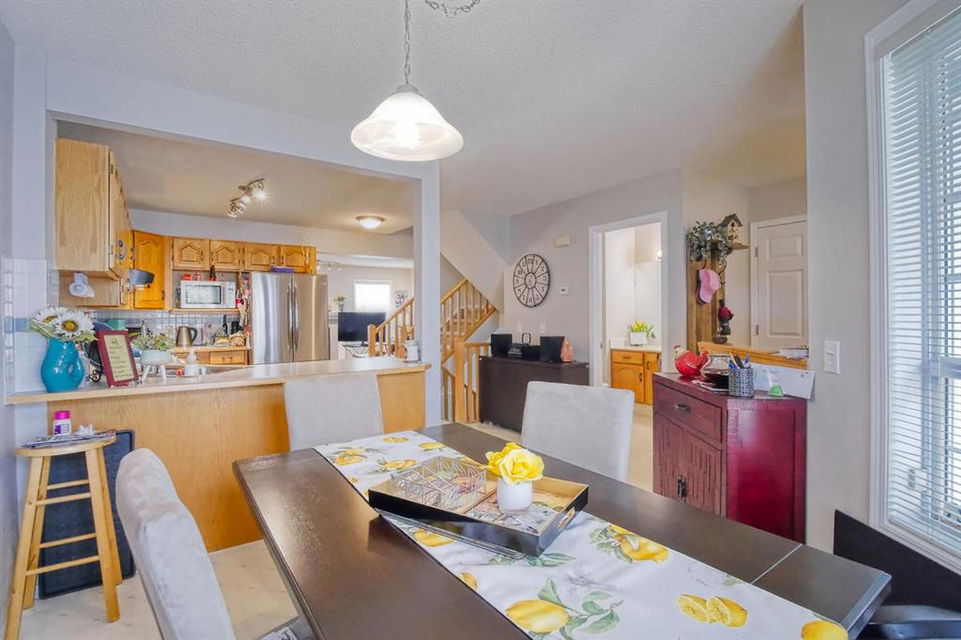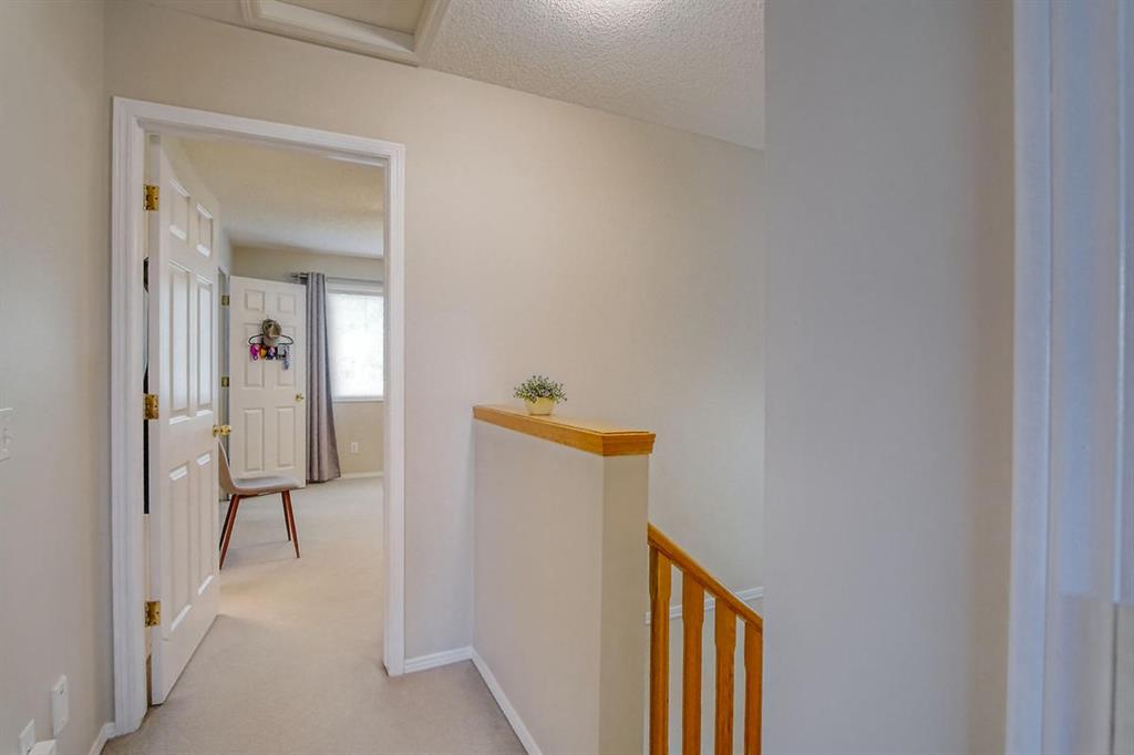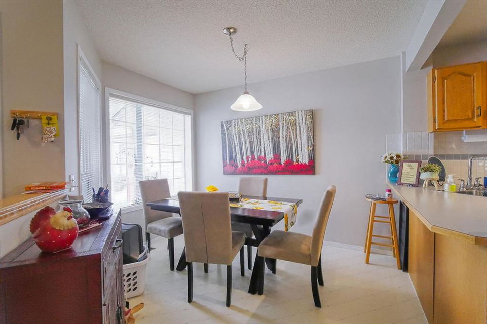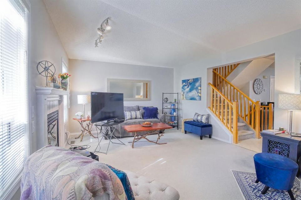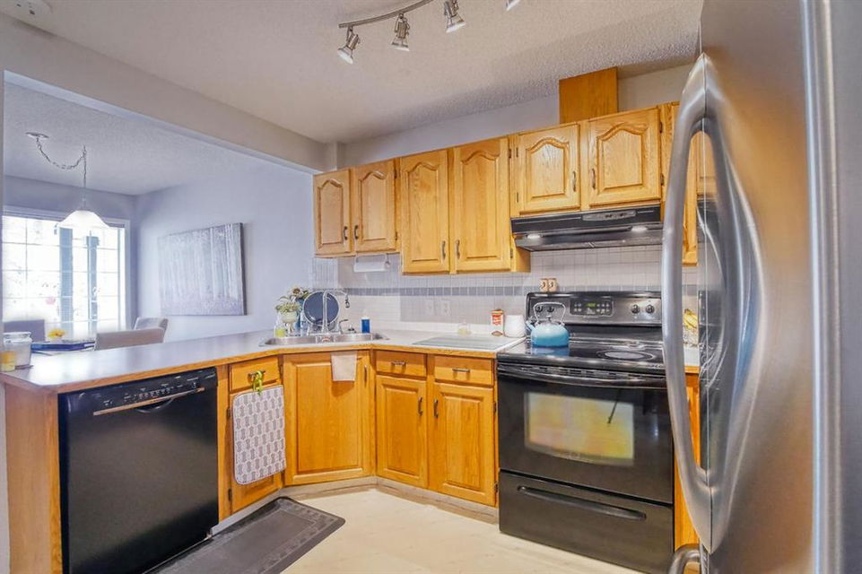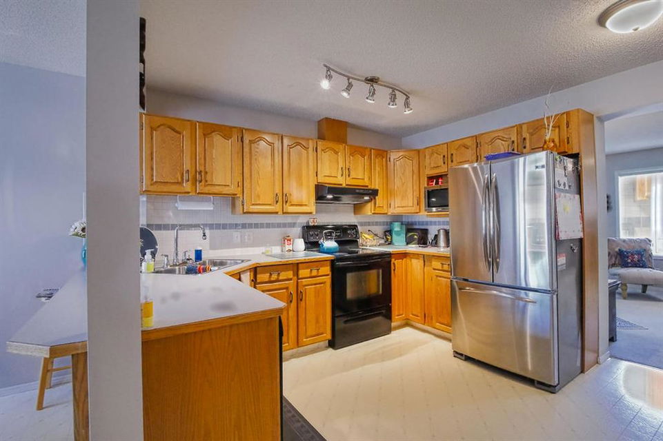 Welcome home to this well cared for townhouse which offers a large living room with gas burning fireplace, good size kitchen and dining area on the main floor. Upper floor offers a large master bedroom with 4-piece en-suite & a walk-in closet, 2 more bedrooms and a full bathroom. A cozy and large family room in the basement, laundry room & storage area. All in a well managed Complex! An excellent opportunity for a first time home buyer. Quiet location yet convenient, steps away from Citadel Park Elementary school , close to bus stop, shopping,,…………..!