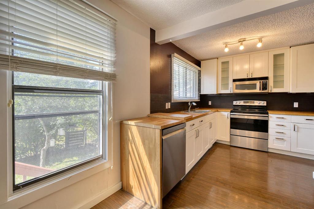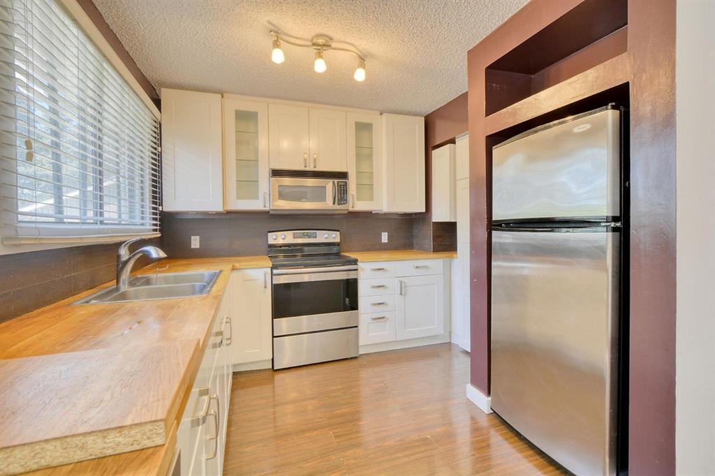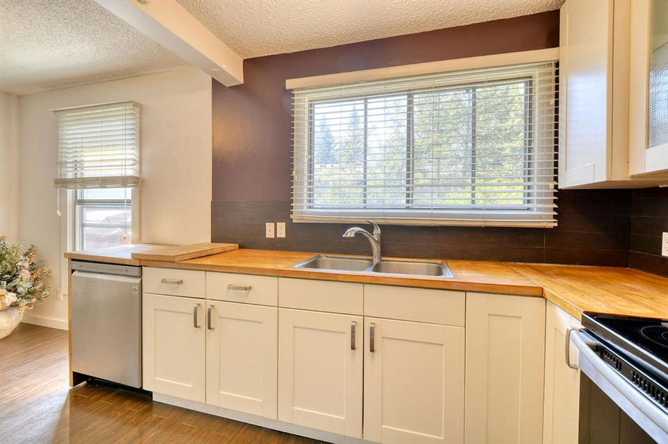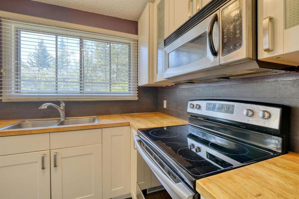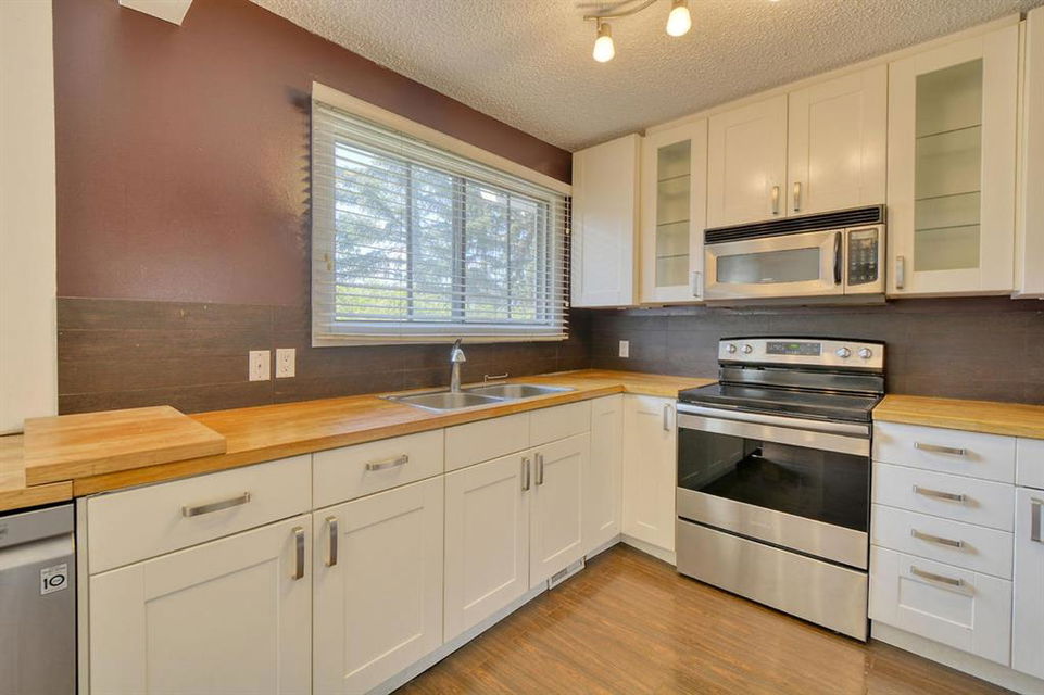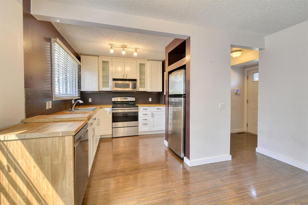Can’t get better! End unit, Sunny West backyard with deck & patio, newer appliances, newer flooring, Newer kitchen Cupboards with NEW cabinets doors, New Blinds,………… are the unique features of this well appointed Townhouse in Ranchland Meadows complex. kitchen with a good sized eating area(dining area) large living room,…………..! Good sized master bedroom and two more bedrooms on upper floor. Recreation room, and a 2-piece washroom in the finished basement. Assigned parking for this unit is right outside of the main entrance door, stall # 23! A perfect First Time Home buyer opportunity. There is a recreation center in the complex that is an ideal place to use for smaller gatherings of up to 50 people as well as plenty of visitors parking stalls. Minutes walk to Ranchlands Elementary school through the walkway and close to all other amenities.