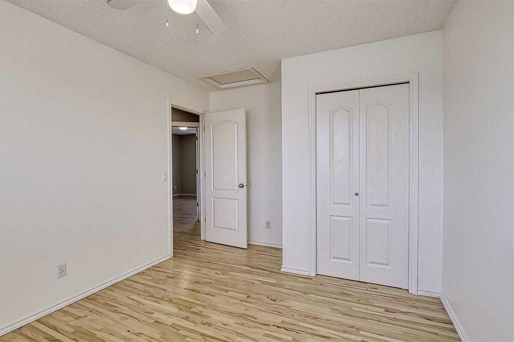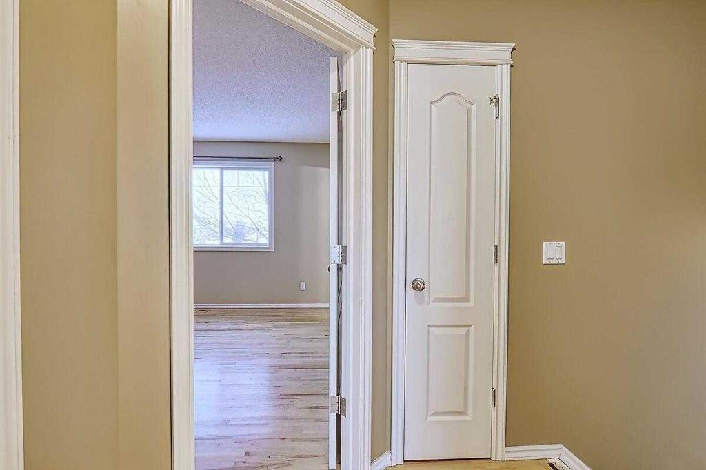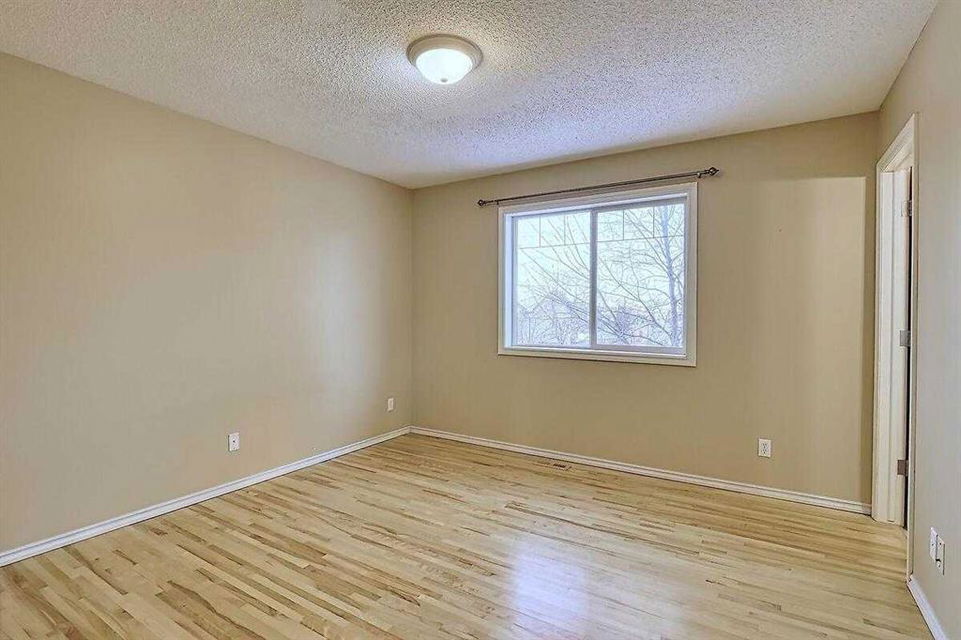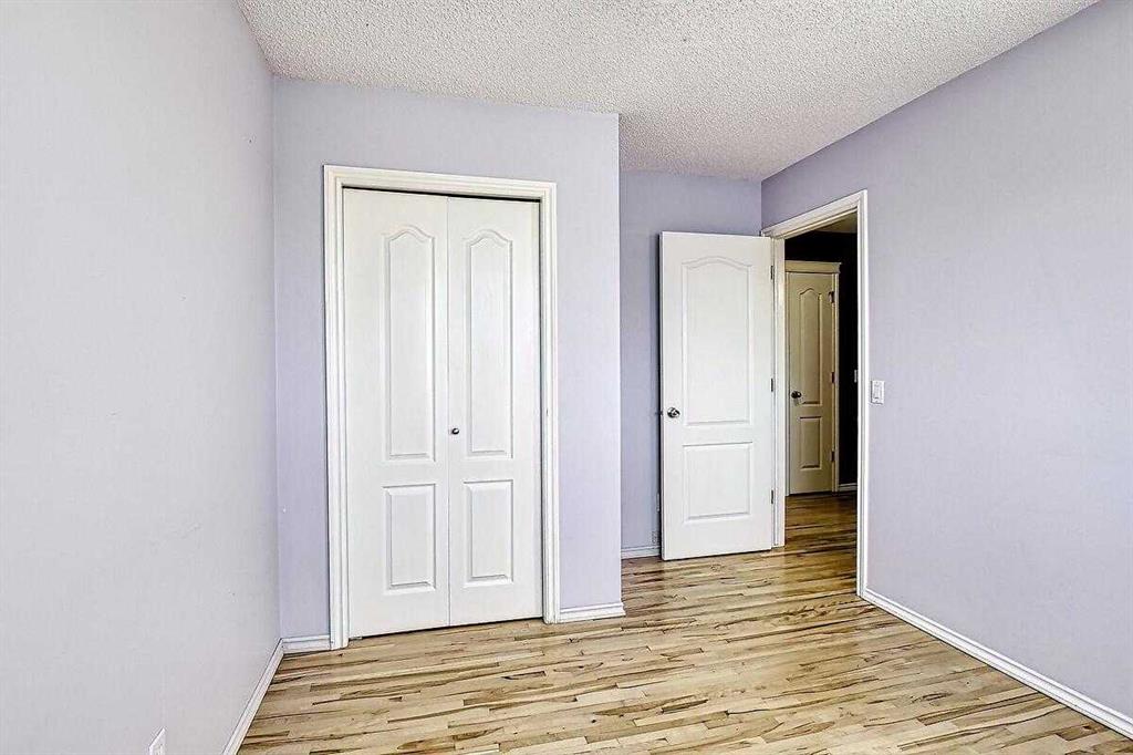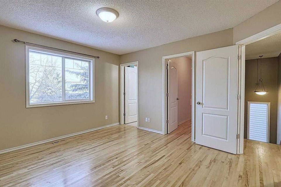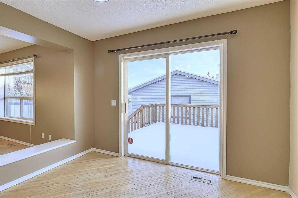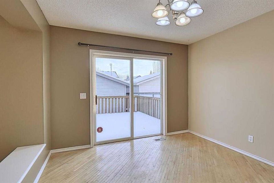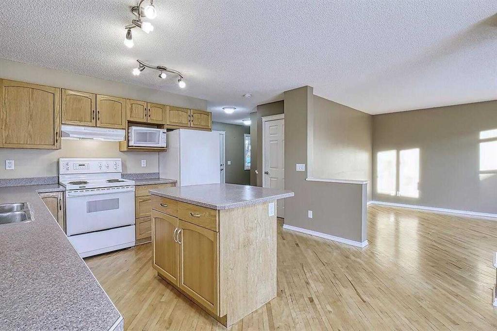 Welcome home to this bright and spacious open layout, on a quiet crescent with a sunny south facing backyard. There is solid Hardwood throughout this ENTIRE home. Large open kitchen with a center Island & extra cabinets, an eating nook with bright natural light, a main floor Den/Office, 1/2 bath with an open foyer that is tiled with Hardwood inlay. The house has 3 good size bedrooms, the Master features a sizable walk-in closet, en-suite bathroom with a soaker tub & plenty of natural light. There is an oversize double garage that has heat, cable, telephone, 220 volt hook-ups, standard and fluorescent lighting. The basement has Rough-in plumbing and has a fantastic layout for future development. This home is minutes away from the bus & LRT access, all types of retail and grocery shopping, a YMCA and schools from Kindergarten to Grade 12, as well as quick access to Stoney Trail. An excellent opportunity for a first time home buyer or a mover up.