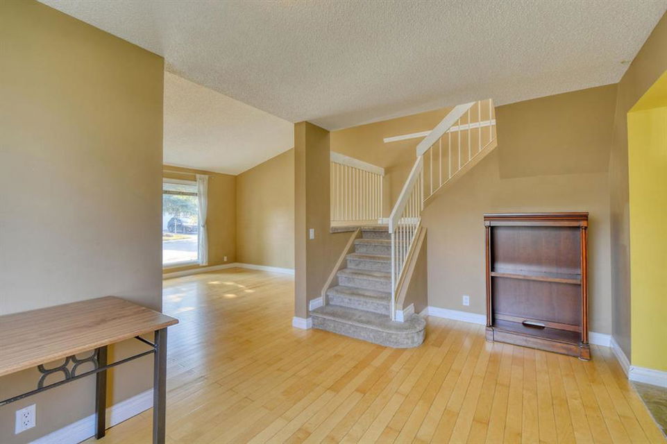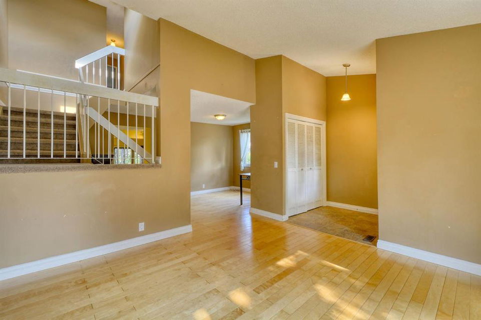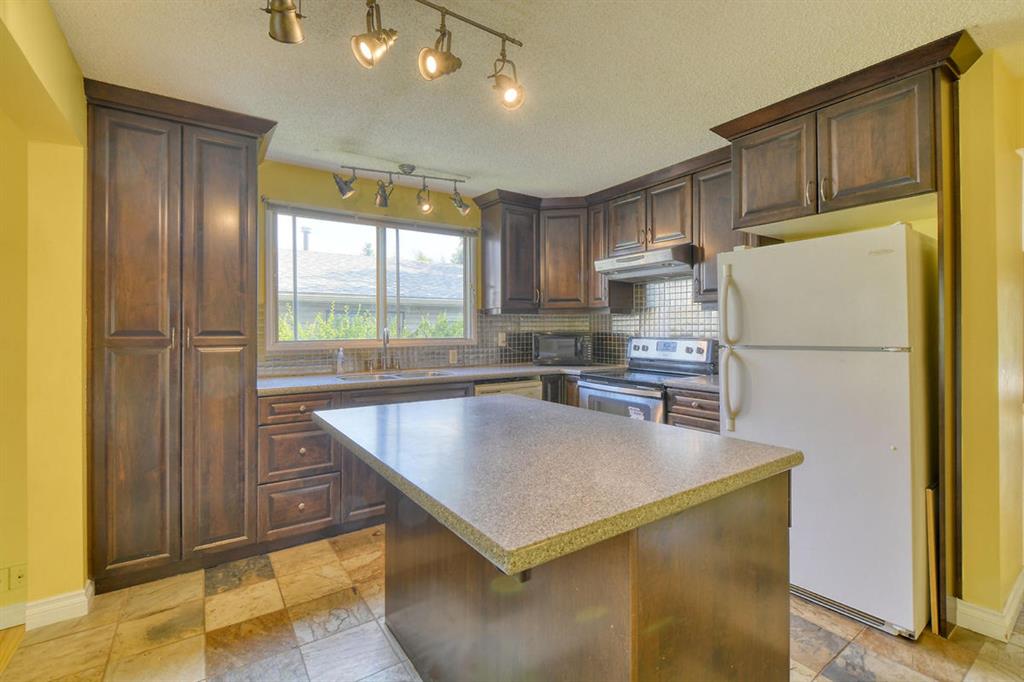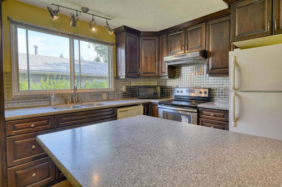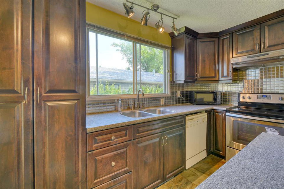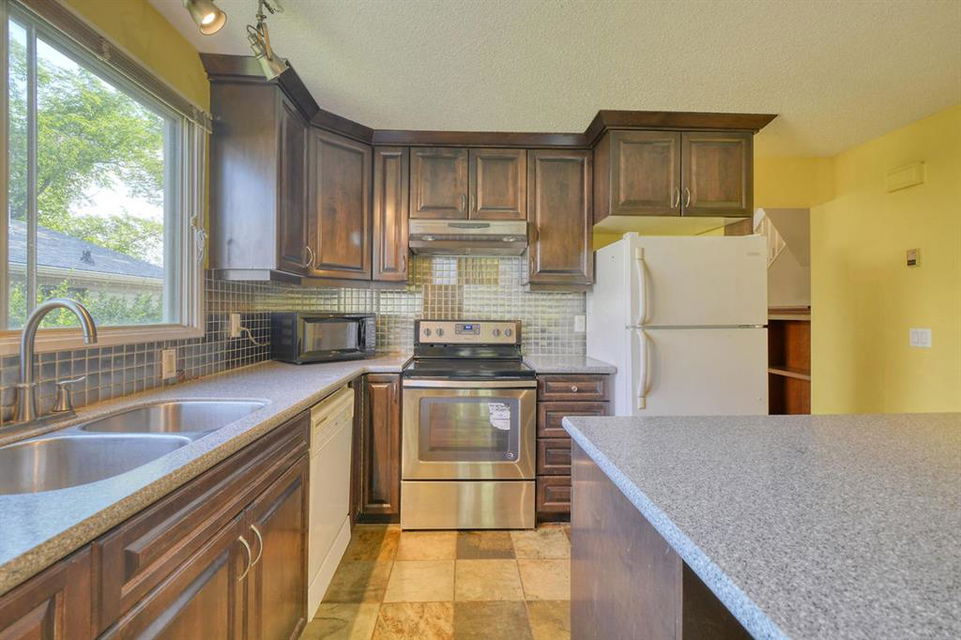 Location! Location! Location! Welcome home to this bright, spacious and functional floor plan! The front room greets you into the spacious main floor, the kitchen boasts custom maple cabinetry and island with solid surface Korean counter tops accented with slate flooring. Open concept kitchen flows seamlessly into a cozy sunken family room featuring maple hardwood flooring and a gas fireplace. The glass sliding doors open up to a spacious deck which leads to a great backyard perfect for outdoor cooking and entertaining. The living room has maple hardwood flooring and vaulted ceilings that opens up to the stairs leading to the bedrooms. The bedrooms are generously sized with large closets and the master bedroom has a 3 piece en-suite and a walk-in closet. The developed basement adds extra space for an exercise room or playroom with a designated media room complete with double doors. Single attached garage comes complete with opener. Located in a quiet area close to shopping, LRT, schools and playgrounds. A wonderful opportunity for a young family or a first time home buyer!