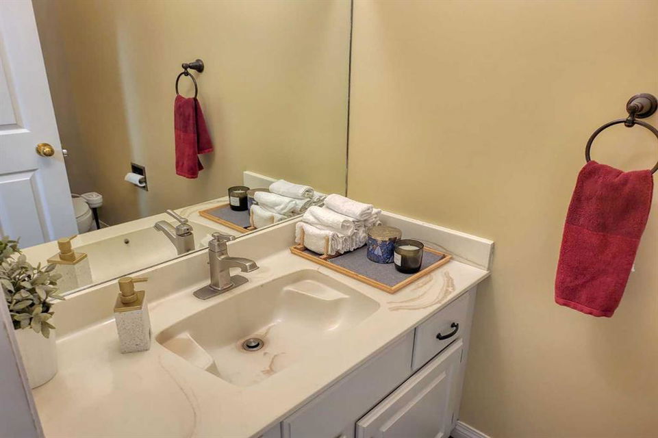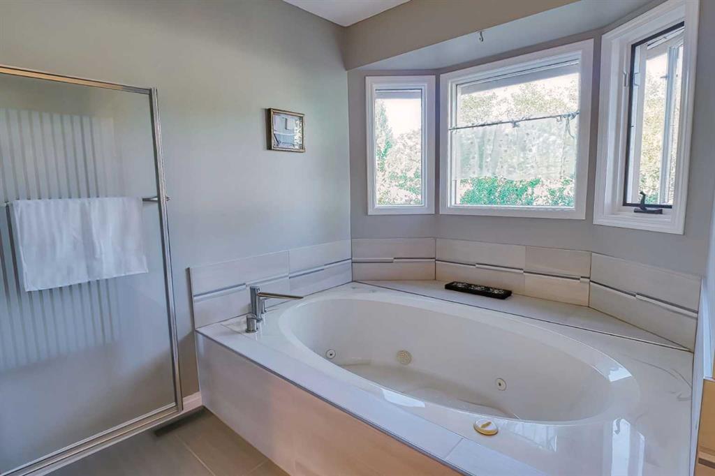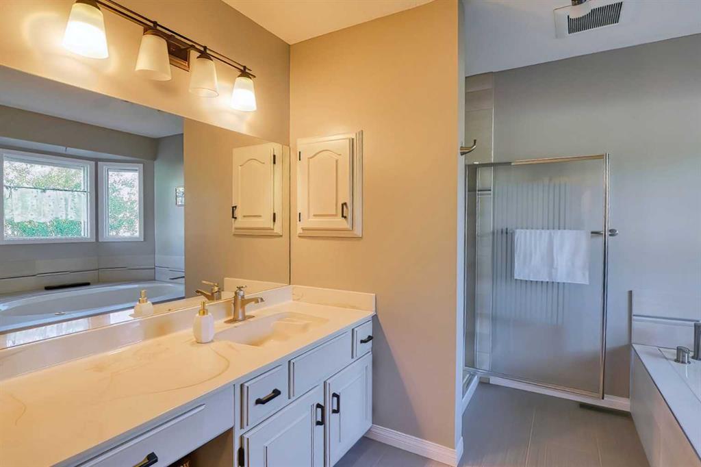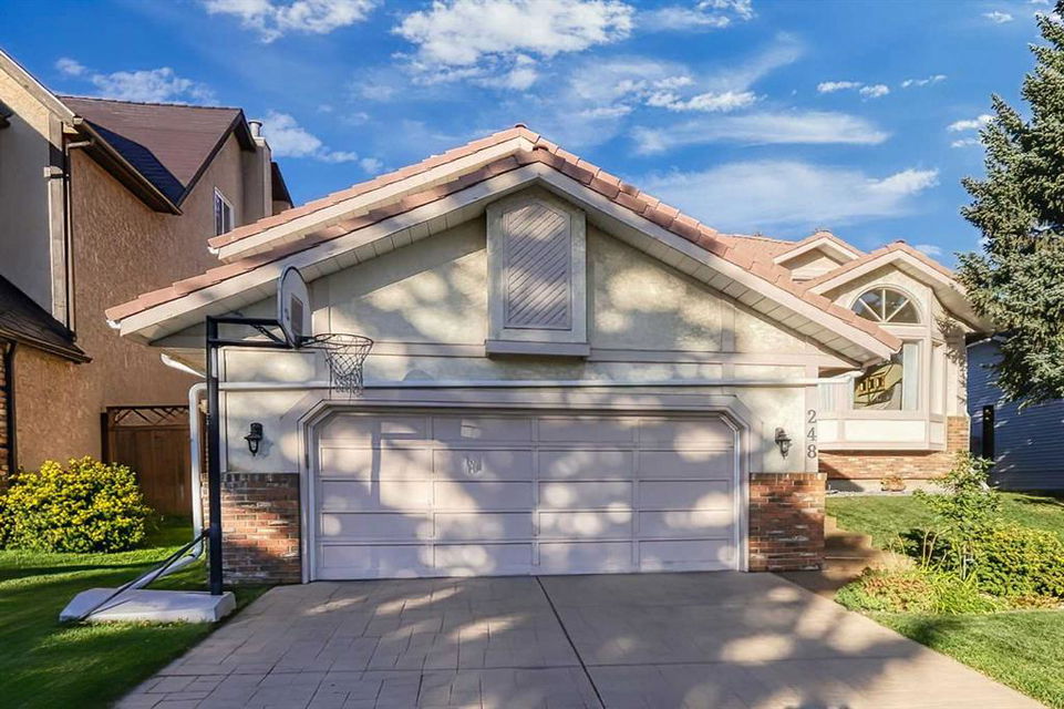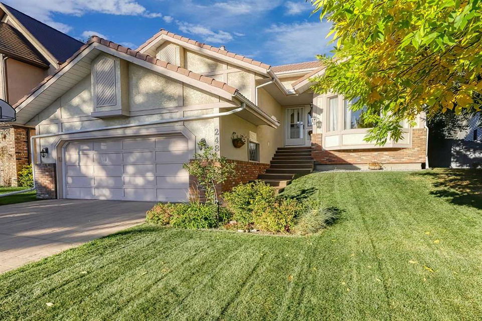 Welcome home! The chance to live in exclusive Hawkwood Manor is here in this beautifully updated & renovated stylish two ST/Split, with a total of 4 bedrooms, complemented by gleaming hardwood floors. This outstanding home boasts a sunken family room with a gas fireplace & built-in wall units, an open concept living/dining room with vaulted ceilings & a bright eat-in kitchen which has black appliances & tile floors. Upstairs there are 3 great bedrooms including the private master retreat with a walk-in closet & a jetted tub en-suite. A 4th bedroom & a bathroom with heated tile floor are in the lower level, complete with an office/playroom & a fabulous games/rec room with a wet bar & a 3-sided gas fireplace. There’s a main floor office/5th bedroom, slate tile floors & Hunter Douglas blinds, a stamped concrete driveway & an unbelievable storage loft in the over sized garage. Newer Dishwasher, newer Washer & Dryer, newer maintenance free (Composite) deck,….! This home is truly well maintained and an excellent home for a growing family.