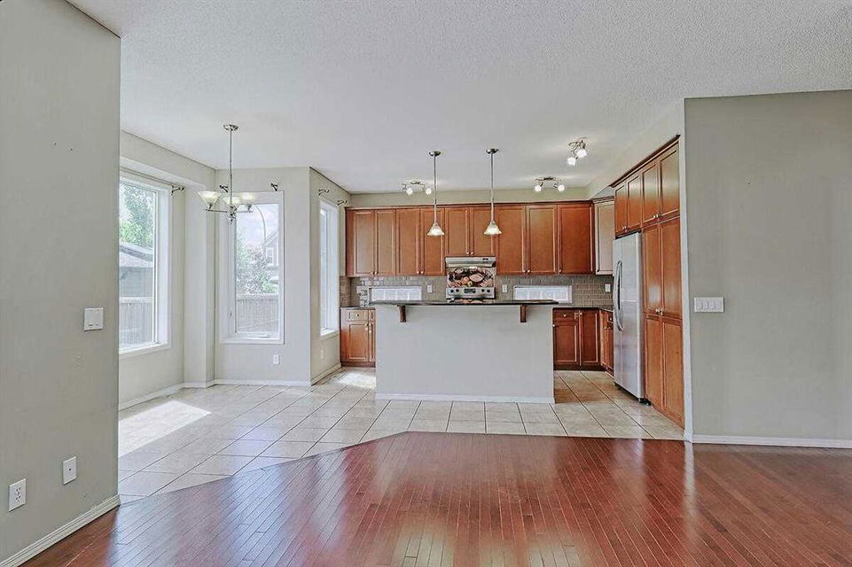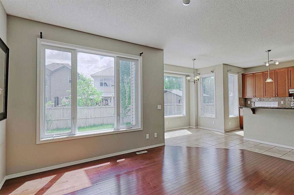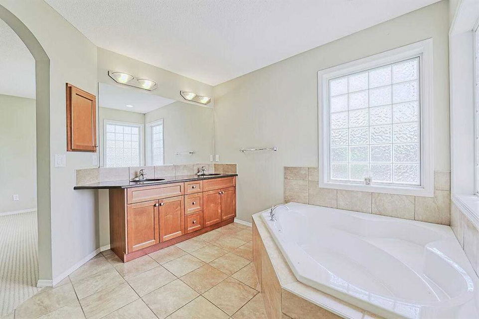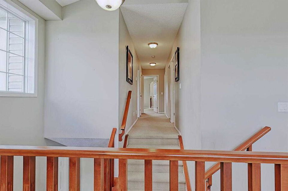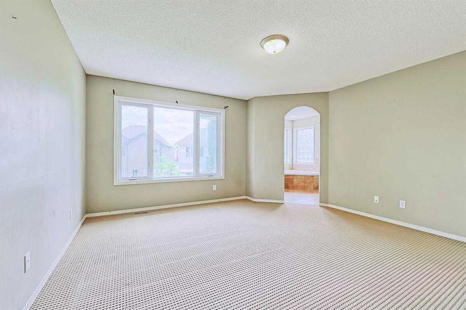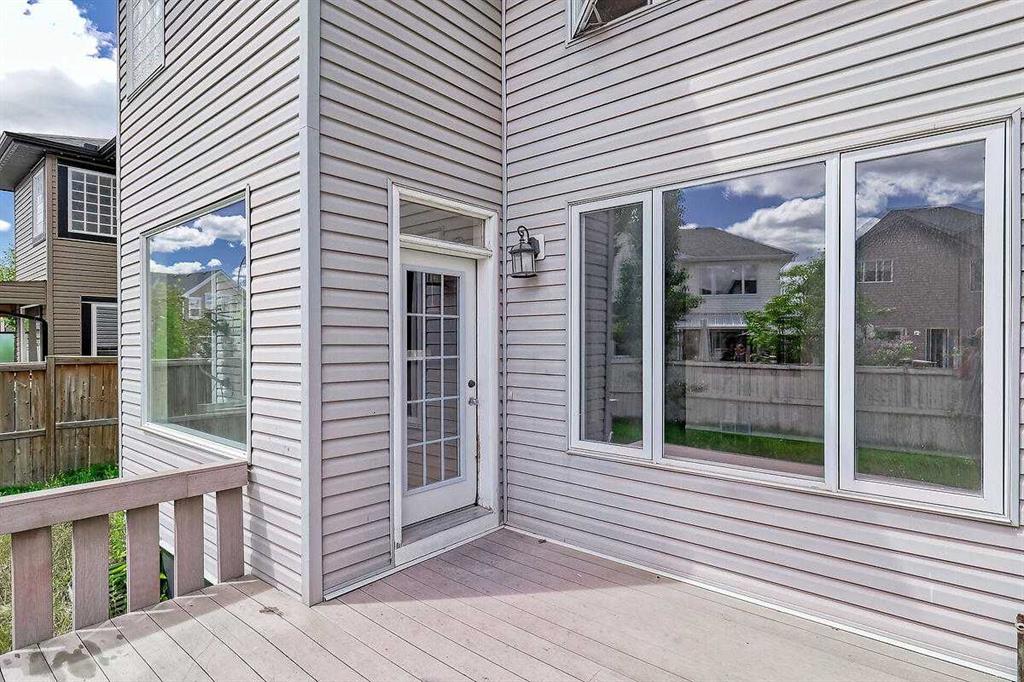 Welcome Home to this spacious 2 storey 4-bedrooms home on a quiet Cul-De-Sac location in the well established community of Royal Oak. The spacious foyer, the maple hardwood flooring, the ceramic tiles, the upgraded carpet, the feature 9’ceilings on main makes this house warm & welcoming. Large kitchen with custom stained 42″ maple cabinets, granite counter tops, center island with breakfast bar, stainless steel appliances-fridge, electric stove, built-in dishwasher & hood fan. The main floor den/office and a formal dining room with open space to the living room makes it bright and open. 4 generous sized bedrooms including a gorgeous master bedroom with 5-piece bathroom, 3 other good sized bedrooms, a 4-piece bathroom and a convenient laundry room completes the upper level. The undeveloped basement,with 3 large windows and roughed-in plumbing for a full bath is an open canvas awaiting your creativity. The South West facing backyard offers a large composite(maintenance free) deck as well as a ton of natural light and warmth for kids to enjoy playing in. A well cared for family home in a quiet location yet with great access to Country Hills BLVD & STONEY Trail, as well as a short bus ride to TUSCANY LRT station. Minutes to Royal Oak Elementary School and William D. Prat Junior High School. A delightful opportunity for a growing family.