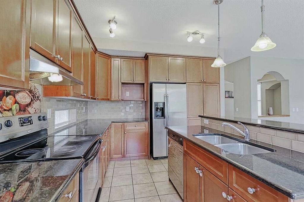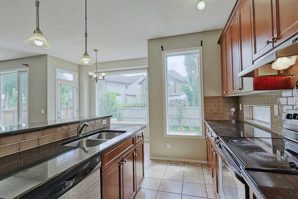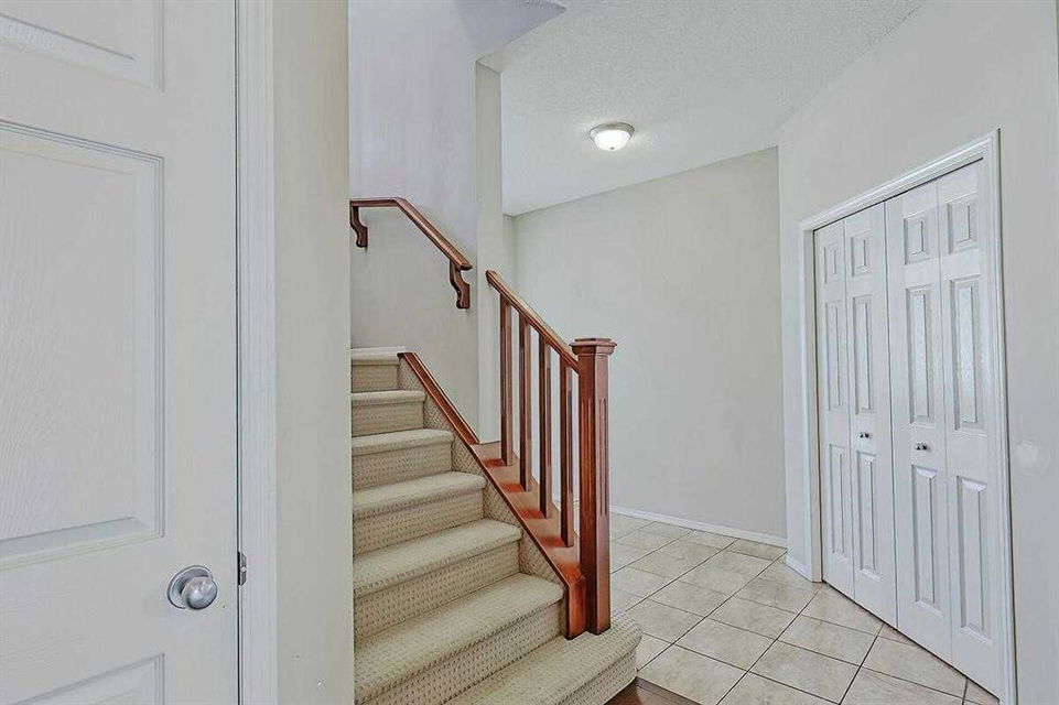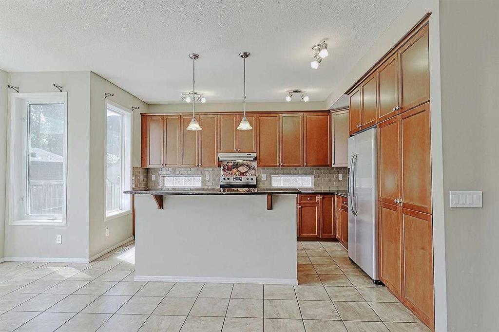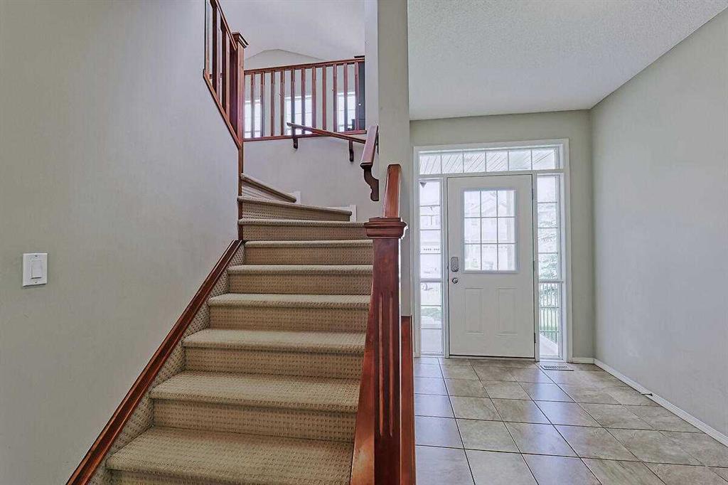 Welcome Home to this spacious 2 storey 4-bedrooms home on a quiet Cul-De-Sac location in the well established community of Royal Oak. The spacious foyer, the maple hardwood flooring, the ceramic tiles, the upgraded carpet, the feature 9’ceilings on main makes this house warm & welcoming. Large kitchen with custom stained 42″ maple cabinets, granite counter tops, center island with breakfast bar, stainless steel appliances-fridge, electric stove, built-in dishwasher & hood fan. The main floor den/office and a formal dining room with open space to the living room makes it bright and open. 4 generous sized bedrooms including a gorgeous master bedroom with 5-piece bathroom, 3 other good sized bedrooms, a 4-piece bathroom and a convenient laundry room completes the upper level. The undeveloped basement,with 3 large windows and roughed-in plumbing for a full bath is an open canvas awaiting your creativity. The South West facing backyard offers a large composite(maintenance free) deck as well as a ton of natural light and warmth for kids to enjoy playing in. A well cared for family home in a quiet location yet with great access to Country Hills BLVD & STONEY Trail, as well as a short bus ride to TUSCANY LRT station. Minutes to Royal Oak Elementary School and William D. Prat Junior High School. A delightful opportunity for a growing family.