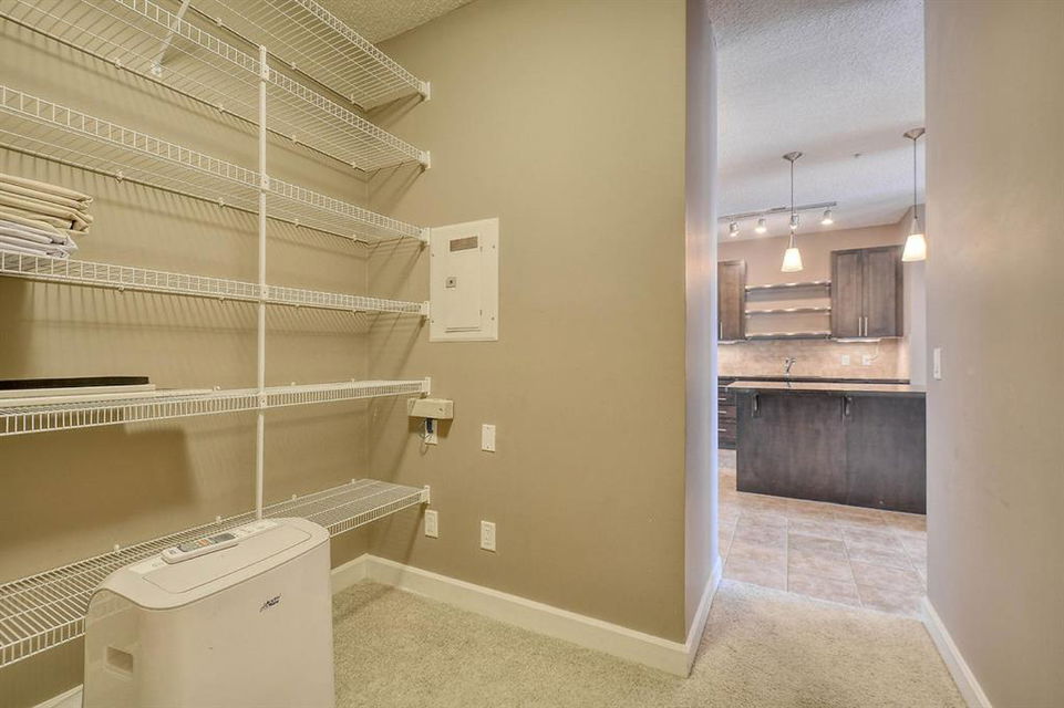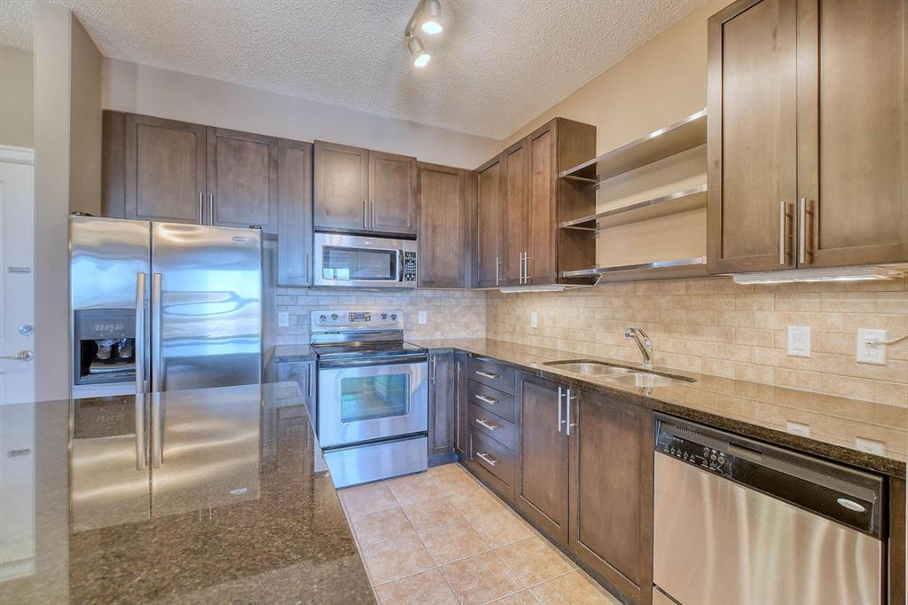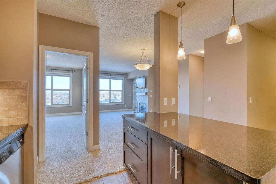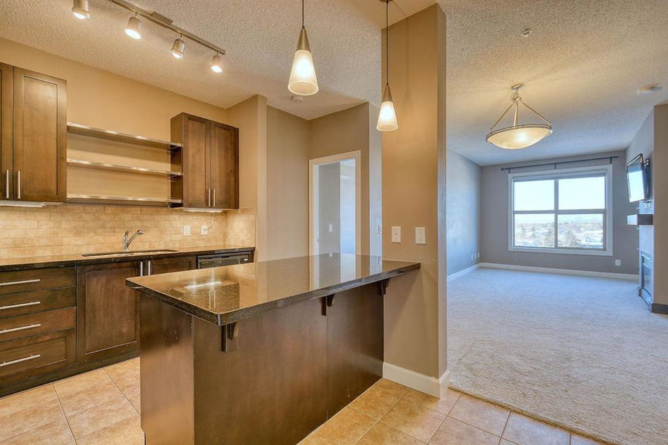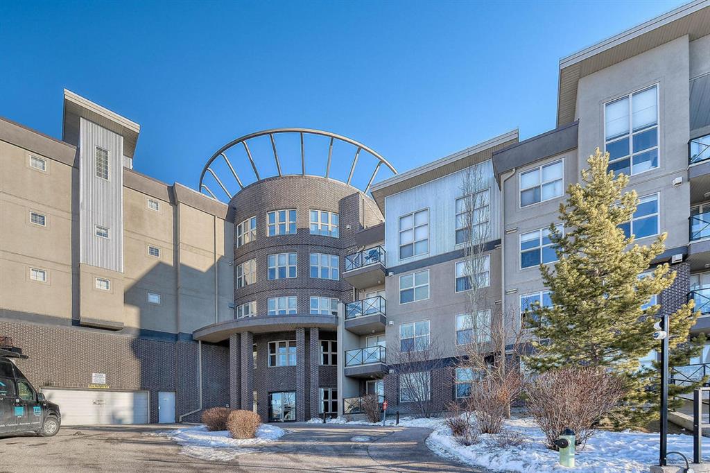 Location! Location! Location! Walking distance to LRT station & Crowfoot shopping center in the popular neighborhood of Arbour Lake, with unobstructed mountain views from living room and balcony! This end unit is right by the emergency exit door, and right next to it is the elevator, easy to get around in the building, offers vaulted ceilings, 2 bedrooms, 2 full bathrooms, den/office, open kitchen with large Island, granite counter tops & overlooking the living room, in-suite laundry for your convenience and extra windows in Master bedroom and the en-suite. There is weight room on 3rd floor, and meeting room on 4th floor, as well as bike storage room on main floor! 2 underground parking stalls & storage locker! An excellent opportunity for a first time home buyer, or an investor!