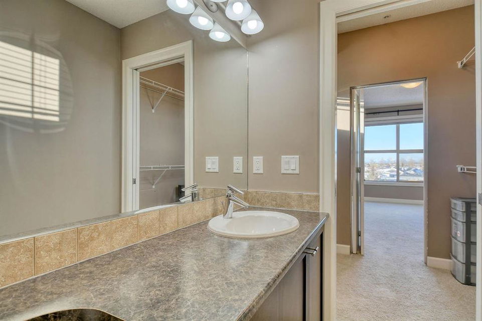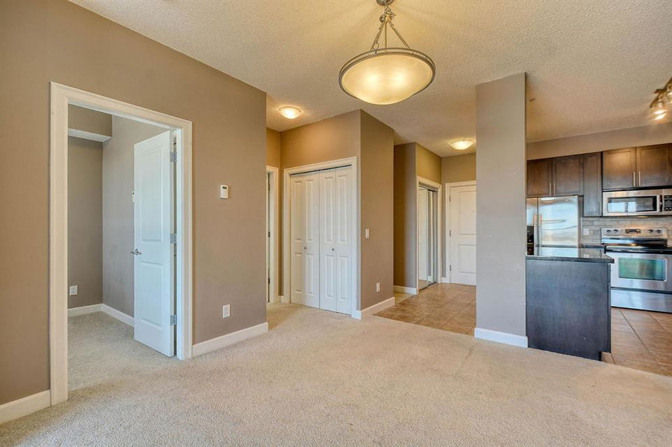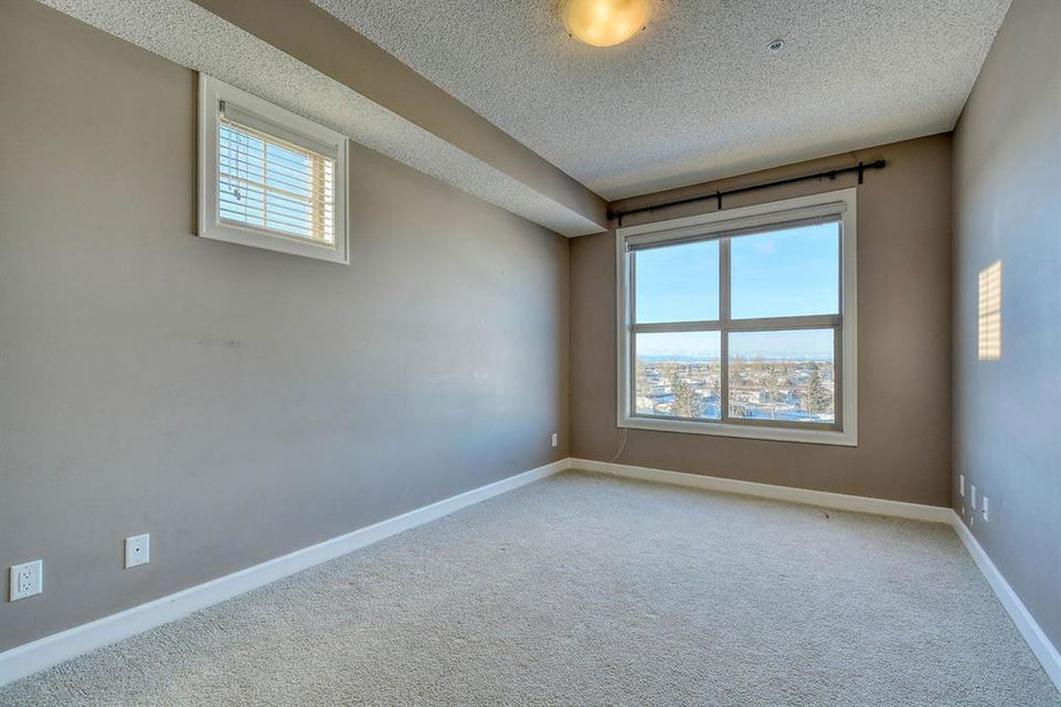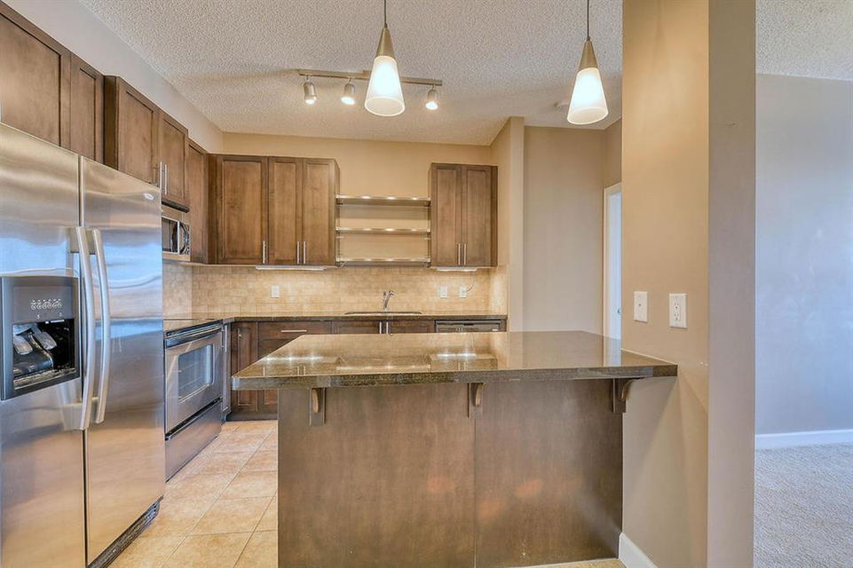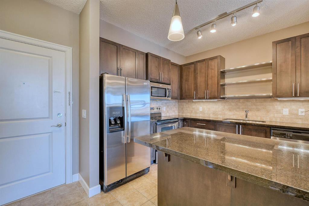 Location! Location! Location! Walking distance to LRT station & Crowfoot shopping center in the popular neighborhood of Arbour Lake, with unobstructed mountain views from living room and balcony! This end unit is right by the emergency exit door, and right next to it is the elevator, easy to get around in the building, offers vaulted ceilings, 2 bedrooms, 2 full bathrooms, den/office, open kitchen with large Island, granite counter tops & overlooking the living room, in-suite laundry for your convenience and extra windows in Master bedroom and the en-suite. There is weight room on 3rd floor, and meeting room on 4th floor, as well as bike storage room on main floor! 2 underground parking stalls & storage locker! An excellent opportunity for a first time home buyer, or an investor!
