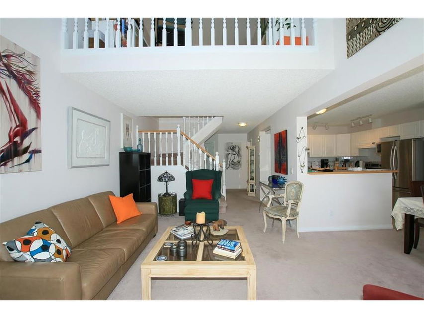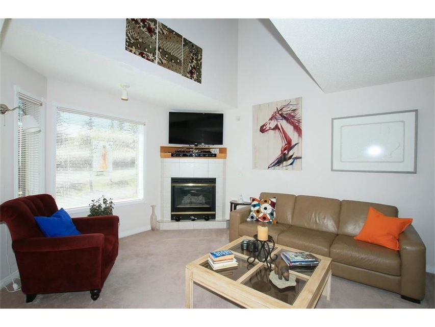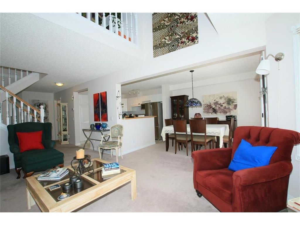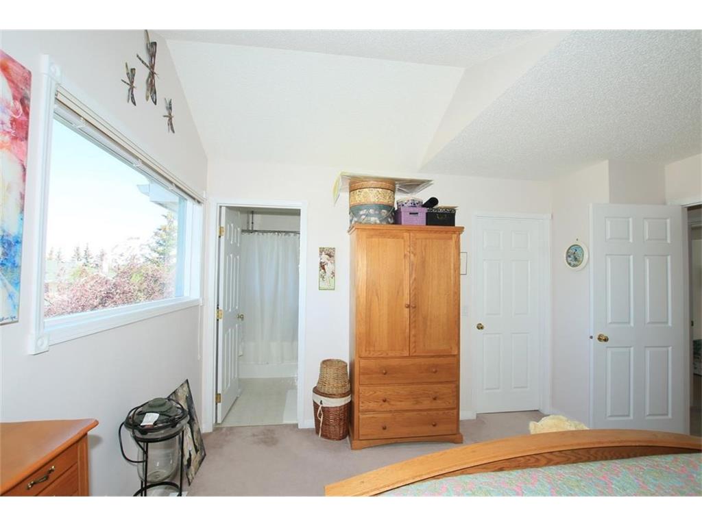 Welcome home to #53, 200 Sandstone Drive N.W. This well maintained 2 Storey home in Sandstone Estates backs onto green space with sunny South exposure and lots of natural light. Clean and bright kitchen with lots of counter space and cabinets, open to the dinning room and a large living room with gas fireplace. Extended size rear deck off the dinning room which gets lots of sunshine. Two upper bedrooms each have their own full en-suite bathrooms. The master has an spacious walk-in closet. Upper loft/den overlooks the below with a vaulted ceiling. Roughed in plumbing in the basement, and 2 large windows, a good potential for future development. Double garage, main floor laundry,….. all in a very well run self-managed Complex & Community, and excellent condition. Come & Check this one out!