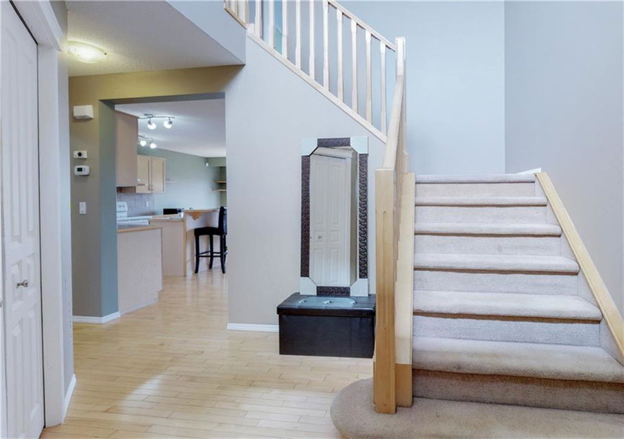 Welcome home to this bright & spacious 2-St home which offers a very functional floor plan. Open ceiling foyer, expansive hallway, good size kitchen with corner pantry, new stainless steel appliances, dining room leads to a large deck & backyard via sliding door. Main floor laundry/mud room, cozy family room with gas burning fireplace. 3 bedrooms, 2 full & 1 half bathrooms, good size master bedroom with 3-piece en-suite, fully finished basement offers office/den, recreation room with built-in wall unit, R.I. plumbing for future bathroom. Good size insulated double attached garage. Close to all amenities.