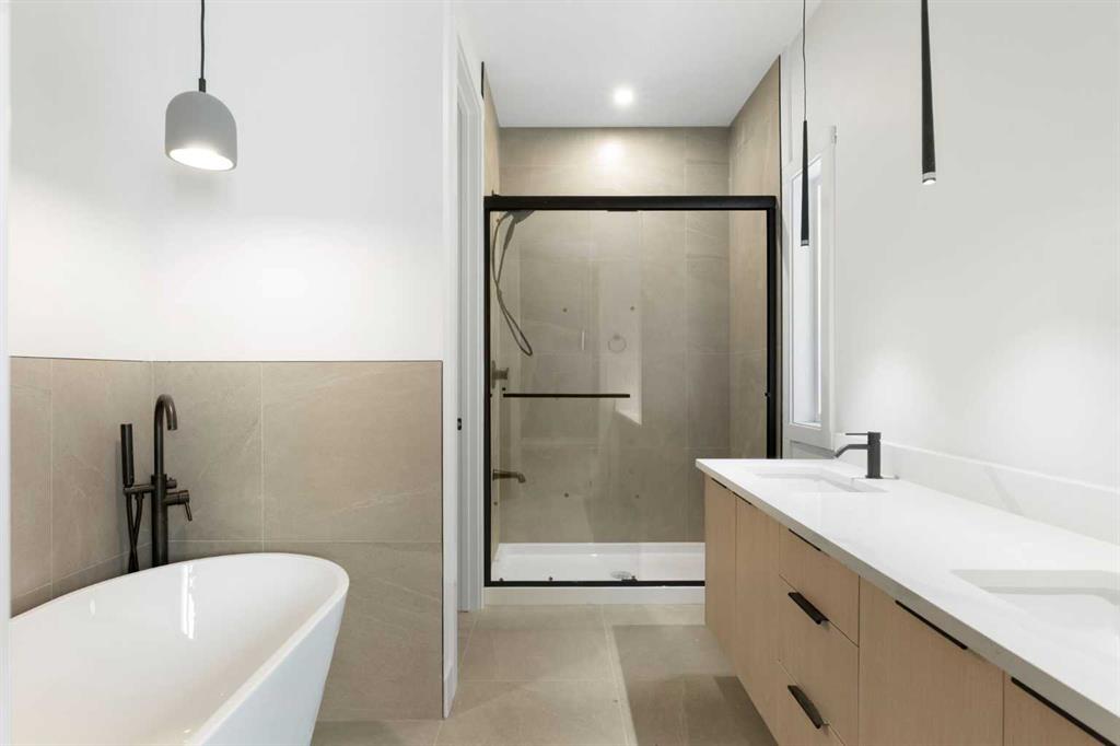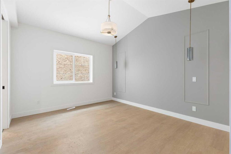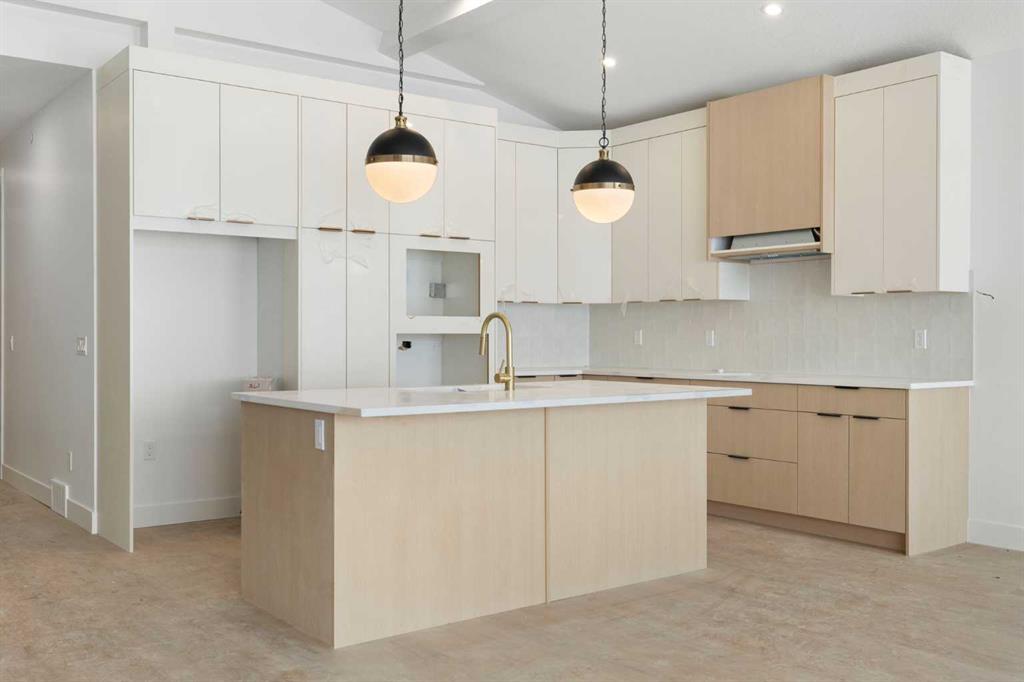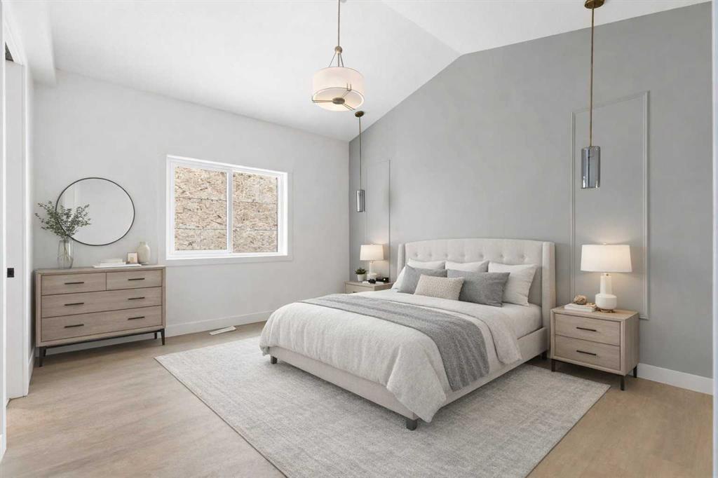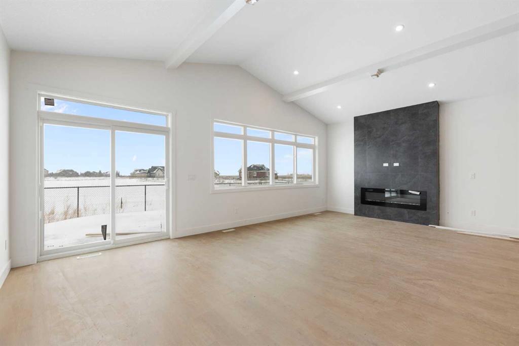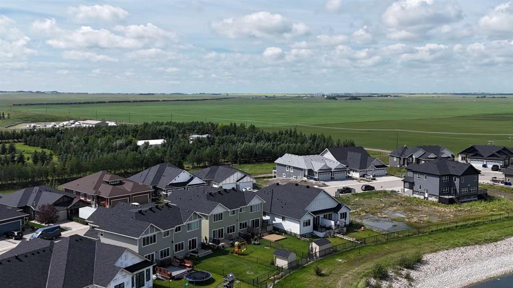 ELIGIBLE FOR FIRST HOME BUYERS GST REBATE. Brand New Fully Finished Bungalow | Pond & Mountain Views | Quiet Cul-de-Sac | Lakes of Muirfield Welcome to 26 St. Andrews Close—an exceptional brand-new semi-detached bungalow perfectly positioned on a quiet cul-de-sac in the sought-after golf course community of Lakes of Muirfield. Backing onto open space with no neighbours behind, this home offers stunning pond and mountain views along with 3,258 sq ft of beautifully finished living space. The main floor spans 1,662 sq ft above grade and showcases soaring vaulted ceilings and an open-concept design filled with natural light. The chef-inspired kitchen features quartz countertops, an oversized island with seating, stainless steel appliances, modern cabinetry, and statement pendant lighting. The kitchen flows seamlessly into the dining area and spacious living room, highlighted by a dramatic floor-to-ceiling tile fireplace feature wall. Expansive rear windows frame peaceful water views and open skies, creating a truly serene backdrop. The primary suite is a private retreat complete with a walk-in closet and a luxurious 5-piece ensuite with dual vanities, a deep soaker tub, and separate shower. A second bedroom, full 4-piece bath, mudroom, and convenient main-floor laundry complete this thoughtfully designed level. The fully finished basement offers incredible additional living space with a massive recreation room and stylish wet bar—perfect for entertaining or relaxing. Two additional bedrooms, a full bathroom, ample storage, and a second laundry area add flexibility and function, ideal for guests or multi-generational living. Enjoy low-maintenance living in this quiet, established golf course community just 20 minutes from Calgary and Strathmore. With pond views, mountain views, no neighbours behind, and a premium cul-de-sac location, this home offers the perfect blend of privacy, comfort, and modern design.