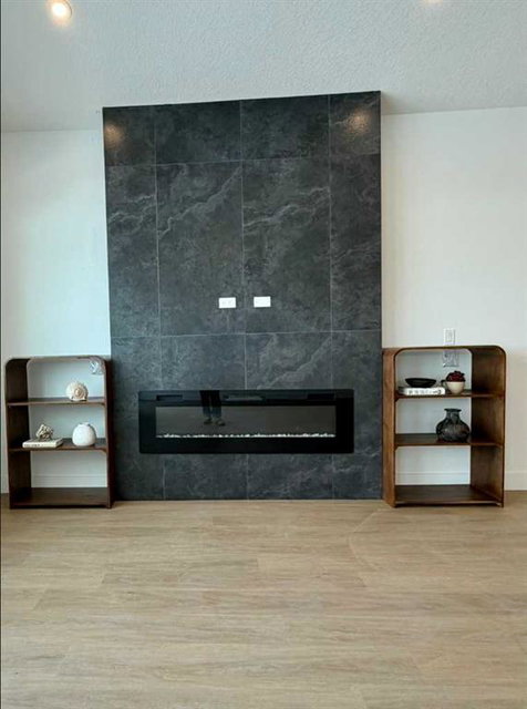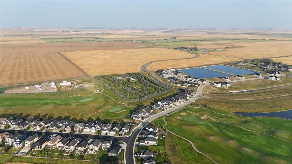 ELIGIBLE FOR FIRST HOME BUYERS GST REBATE. Brand New Fully Finished Bungalow | Pond & Mountain Views | Quiet Cul-de-Sac | Lakes of Muirfield Welcome to 24 St. Andrews Close—an exceptional brand-new semi-detached bungalow perfectly positioned on a quiet cul-de-sac in the sought-after golf course community of Lakes of Muirfield. Backing onto open space with no neighbours behind, this home offers stunning pond and mountain views along with 3,258 sq ft of beautifully finished living space. The main floor spans 1,662 sq ft above grade and showcases soaring vaulted ceilings and an open-concept design filled with natural light. The chef-inspired kitchen features quartz countertops, an oversized island with seating, stainless steel appliances, modern cabinetry, and statement pendant lighting. The kitchen flows seamlessly into the dining area and spacious living room, highlighted by a dramatic floor-to-ceiling tile fireplace feature wall. Expansive rear windows frame peaceful water views and open skies, creating a truly serene backdrop. The primary suite is a private retreat complete with a walk-in closet and a luxurious 5-piece ensuite with dual vanities, a deep soaker tub, and separate shower. A second bedroom, full 4-piece bath, mudroom, and convenient main-floor laundry complete this thoughtfully designed level. The fully finished basement offers incredible additional living space with a massive recreation room and stylish wet bar—perfect for entertaining or relaxing. Two additional bedrooms, a full bathroom, ample storage, and a second laundry area add flexibility and function, ideal for guests or multi-generational living. Enjoy low-maintenance living in this quiet, established golf course community just 20 minutes from Calgary and Strathmore. With pond views, mountain views, no neighbours behind, and a premium cul-de-sac location, this home offers the perfect blend of privacy, comfort, and modern design.