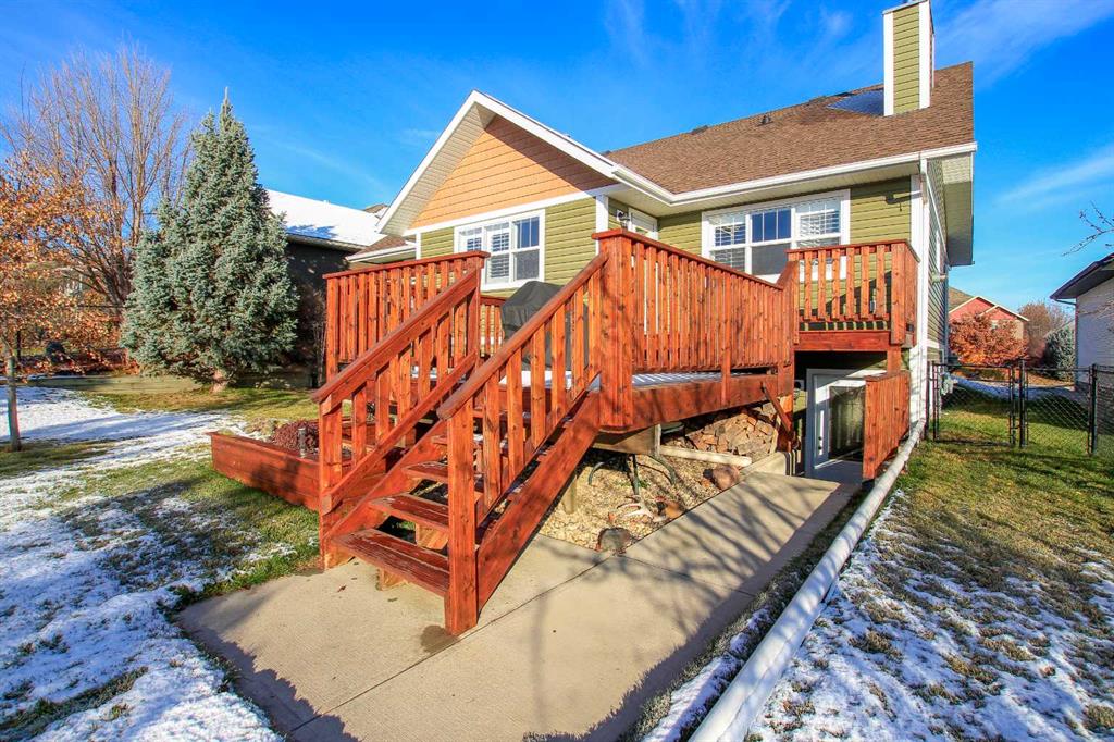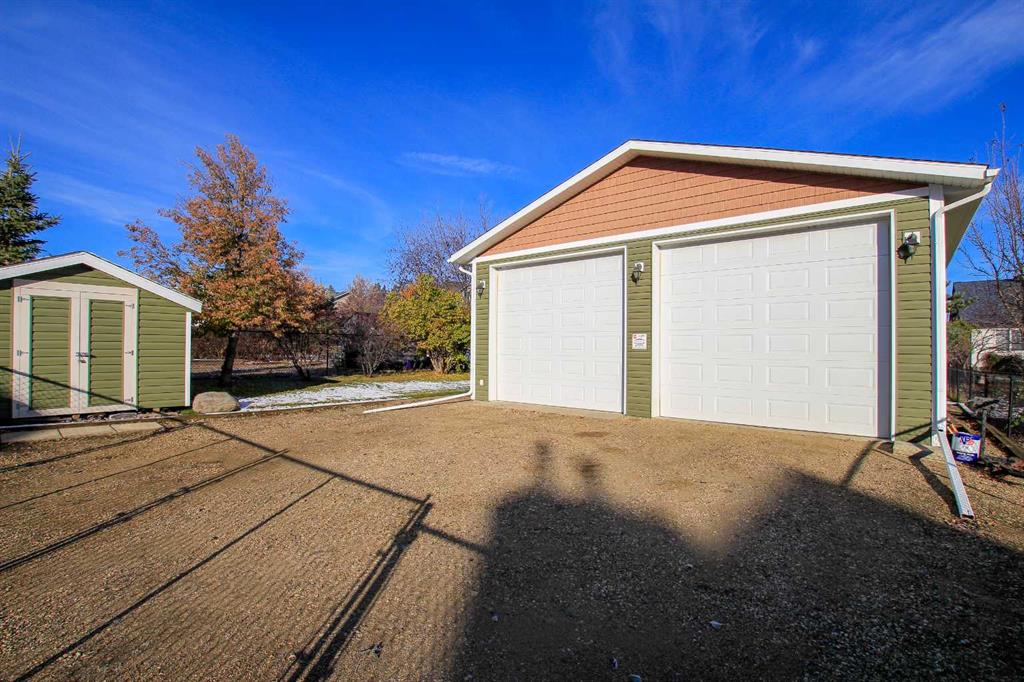 FULLY DEVELOPED 4 BEDROOM + OFFICE, 3 BATH BUNGALOW ~ 2 HEATED GARAGES ~ LARGE FULLY FECNED SOUTH FACING BACKYARD W/MATURE LANDSCAPING ~ WALK-UP BASEMENT W/SEPARATE ENTRY ~ Covered front veranda welcomes you to this well cared for home and leads to a spacious foyer ~ Open concept main living space ~ The living room features large windows that overlook the backyard and is centred by a cozy gas fireplace with built in shelving ~ The kitchen offers an abundance of warm stained cabinets, ample counter space with two eating bars, full tile backsplash, stainless steel appliances and a walk in pantry ~ Easily host large gatherings in the dining room featuring cathedral vaulted ceilings and garden door access to the deck and backyard ~ The primary bedroom can accommodate a king size bed plus multiple pieces of furniture, offers a spa like ensuite with a walk in shower and jetted soaker tub, plus a spacious walk in closet ~ Home office/flex space is conveniently located just off the main entry and has large windows that overlook the veranda and front yard ~ Main floor laundry is located in it's own room and is next to the 2 piece bathroom ~ The fully finished basement has large above grade windows and a separate entry ~ Huge family room features a cozy wood burning stove with a tile surround, roughed in plumbing for a wet bar, and tons of space for a media/sitting area, home gym and games tables ~ 3 bedrooms are all a generous size with ample closet space ~ 4 piece bathroom has an oversized vanity ~ Ample storage throughout ~ Other great features and upgrades include; Central air, roughed in under floor heat, roughed in central vacuum, wainscotting and woodwork throughout, shutters on all main floor windows ~ 28'/26' x 23' attached garage is heated, insulated, finished with painted O.S.B., has 2 overhead doors, high ceilings, windows, a man door to the front yard and an extra long driveway ~ 30' x 30' detached garage/shop is heated, insulated and finished with painted O.S.B., 220V wiring, and a floor drain ~ The backyard is beautifully landscaped with mature trees, shrubs and perennials, includes a garden shed, and is fully fenced with back alley access ~ Located in College Heights, steps to schools, parks, walking trails and lakes, and with easy access to all other amenities ~ Pride of ownership is evident in this well cared for, move in ready home!