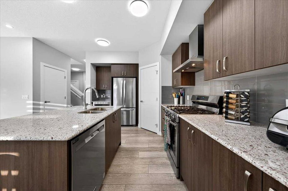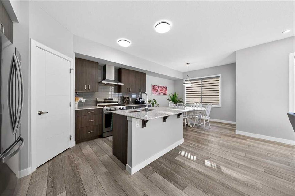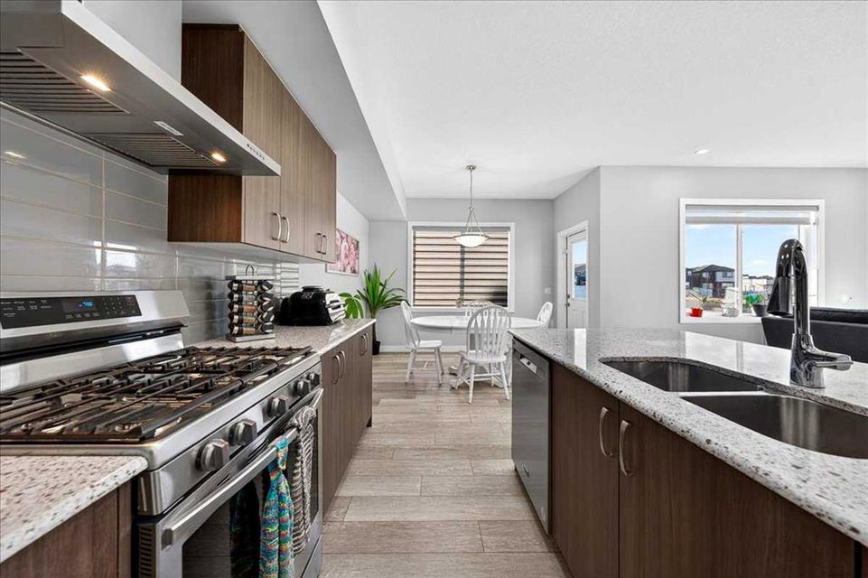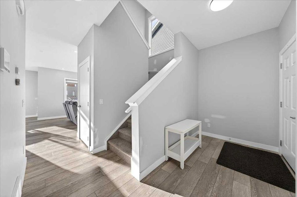 Welcome to Belmont, a thoughtfully designed two-storey home offering 1,706 sq ft of comfortable and functional living space. This beautifully upgraded home features 3 bedrooms and 2.5 bathrooms, perfectly suited for modern family living. The main floor boasts a bright rear dining nook and a spacious living room filled with natural light, flowing seamlessly from the upgraded kitchen. Enjoy quartz countertops, stainless steel appliances including a built-in microwave and gas stove, a large island, and a convenient walk-in pantry—ideal for both everyday use and entertaining. A practical mudroom and 2-piece bath complete the main level. Upstairs, you’ll find a central bonus/family room that provides a great space for relaxing or gathering, along with a full laundry room for added convenience. The private primary bedroom features a walk-in closet and a 3-piece ensuite, while the additional bedrooms also include their own walk-in closets, offering plenty of storage for the whole family. The basement is undeveloped and includes a separate side entrance, providing excellent potential for future development or rental income, subject to city approvals and permits. Close to all the amenities. With a well-balanced layout designed for both comfort and functionality, this home in the desirable Belmont community is a fantastic opportunity you won’t want to miss!