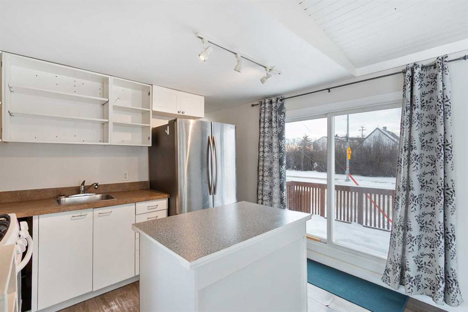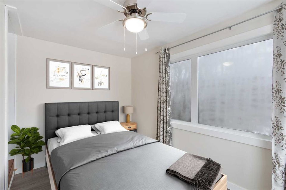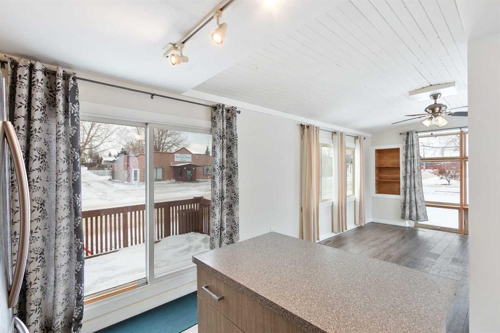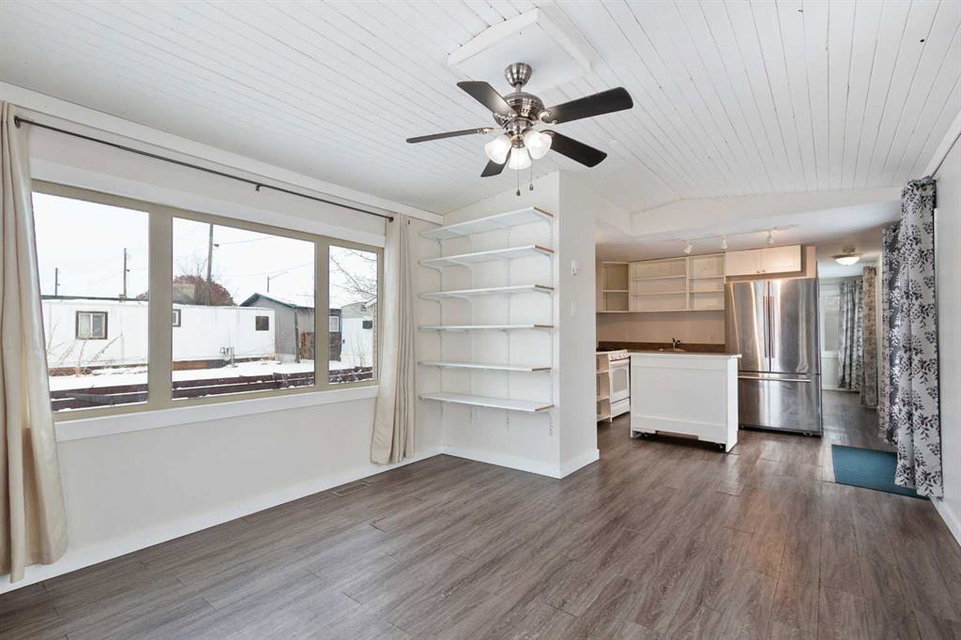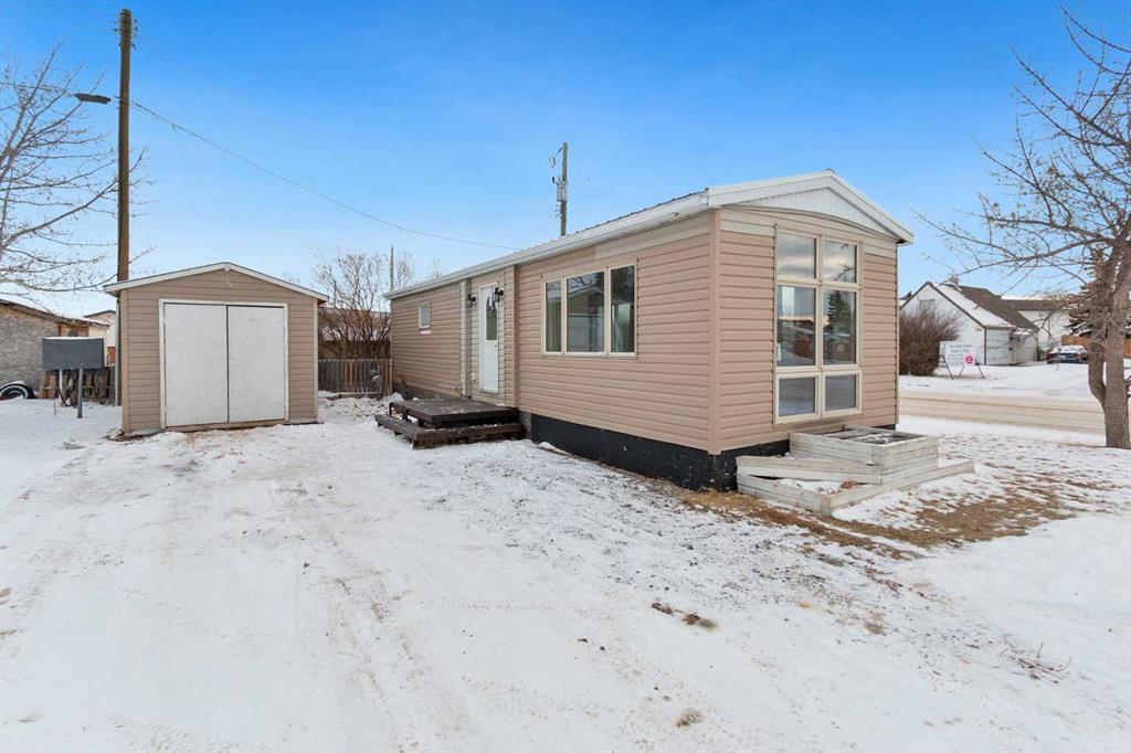 Settle into a simple and more affordable way of living in this cozy 1 bedroom, 1 bathroom mobile home on a corner lot (leased). The kitchen with center island is open to the dining and living area which is further enhanced by an abundance of windows. You're plants will love it here! A sliding patio door provides convenient access to a sunny south-facing deck (14'x8'), that is perfectly situated to avoid those NW winds. Down the hall is a 3-piece bathroom with newer stacked washer/dryer. The primary bedroom is located at the back of the home and again offers large windows for abundant natural light. Included is an insulated storage shed (16'x10') and this lot offers off-street parking (allowing for 2 vehicles). In a world of over-consumption and rising costs, this is a refreshing alternative that offers simplicity, affordability, and low maintenance! Perfect for buyers eager to customize and make it their own through a little sweat equity. Here you can enjoy the comfort of community living in this well-situated mobile home park. A short stroll brings you to local restaurants, shopping, and your favourite spots for morning coffee, while offering easy access to Highway 2A for an easy commute to neighbouring Town's/Cities. It’s a lifestyle that’s relaxed, connected, and convenient. Lot fees are between buyer/tenant and landowner and will be confirmed via a lease agreement but are expected to be $460/month. *Living room image has been virtually staged*